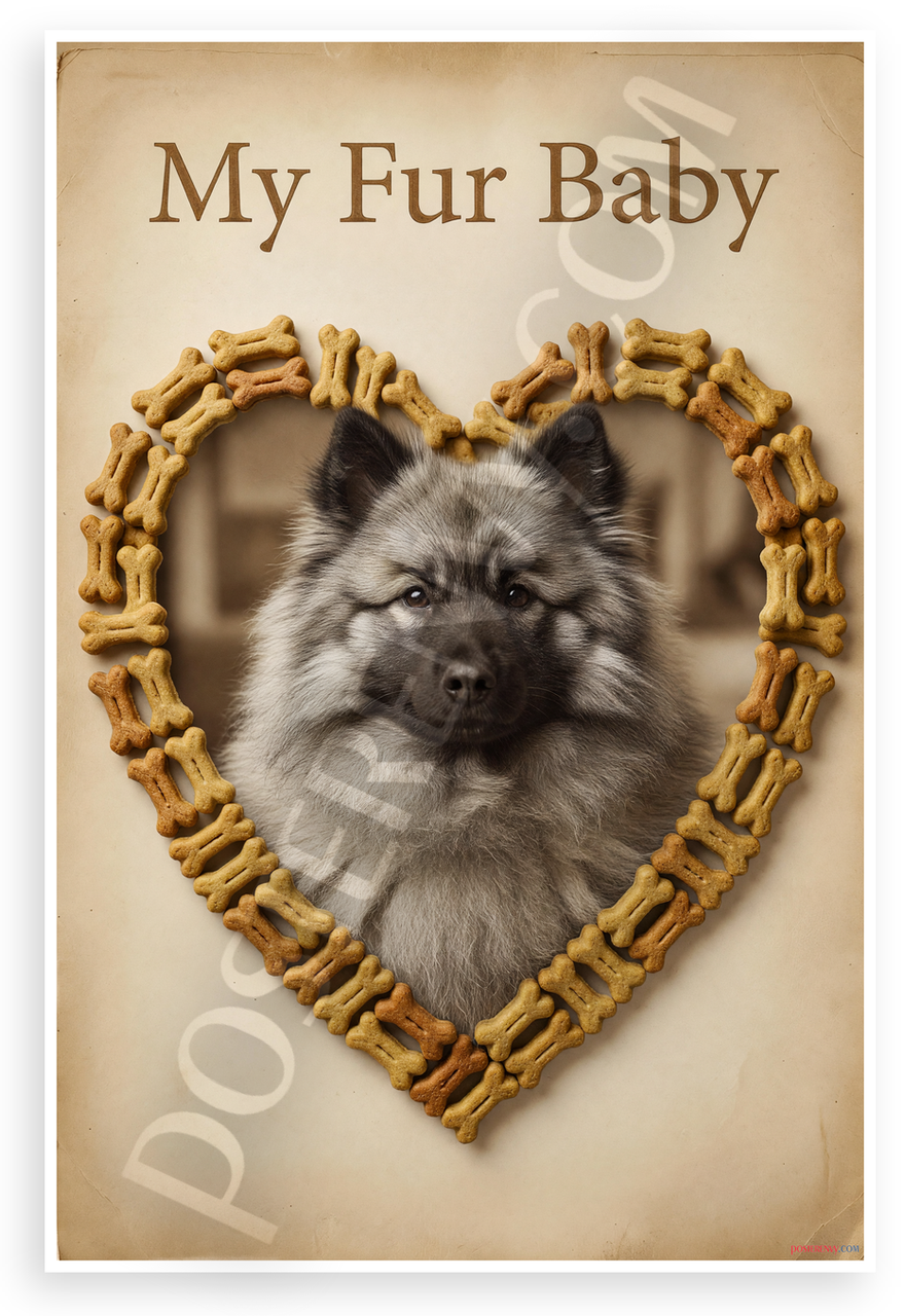 - Charming Pet Portrait: Vintage design with Keeshond dog centered in heart-shaped dog bone frame and 'My Fur Baby' title creates heartwarming, nostalgic vibe. Perfect for living rooms, bedrooms, or pet-themed spaces