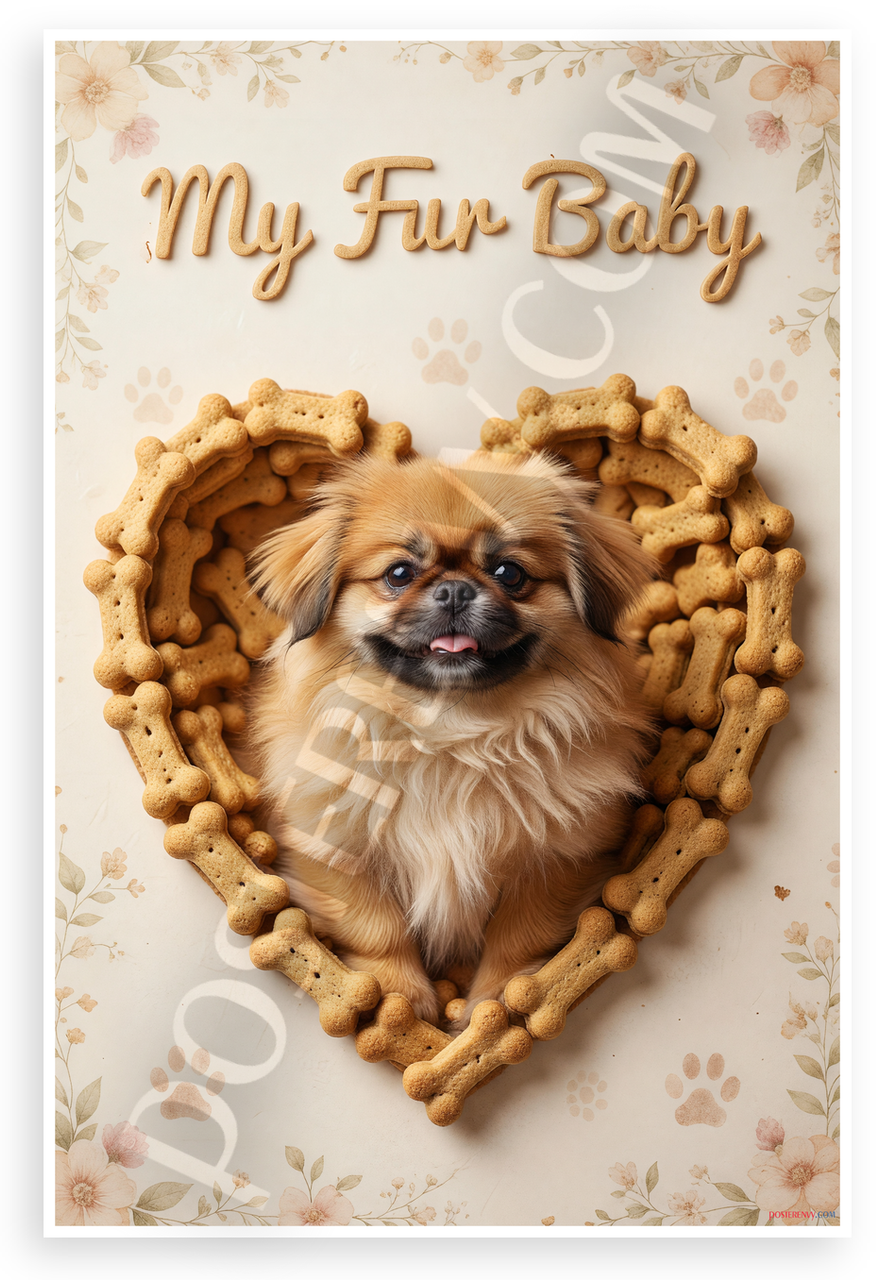 - Premium Print: This PosterEnvy 12x18 inch poster is printed on Durable, Heavy Duty Paper, Designed to last many years. Features cute Pekingese in dog bone heart frame with My Fur Baby text