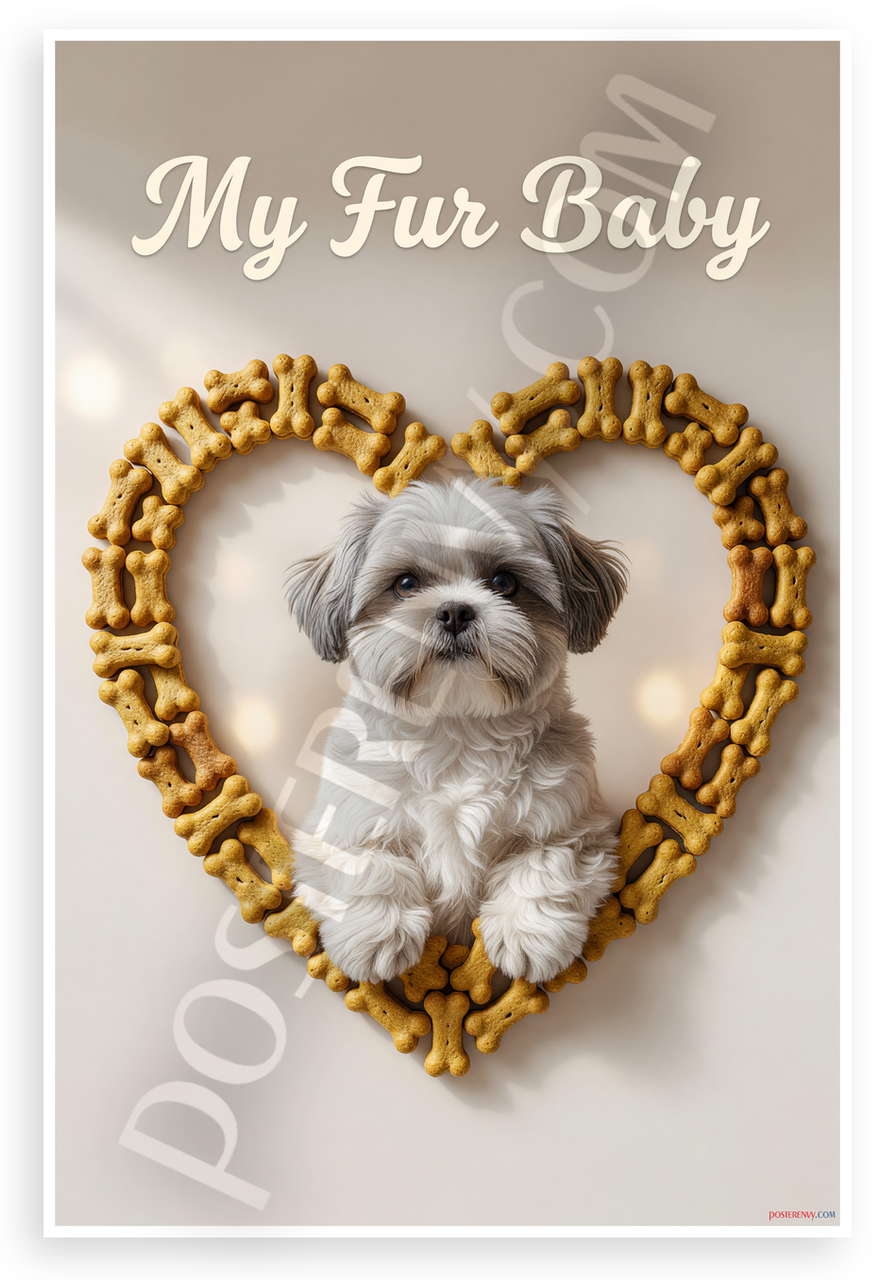 - Premium Print: This PosterEnvy 12x18 inch poster is printed on Durable, Heavy Duty Paper, Designed to last many years. Features Shih Tzu in dog bone treat heart frame with My Fur Baby text