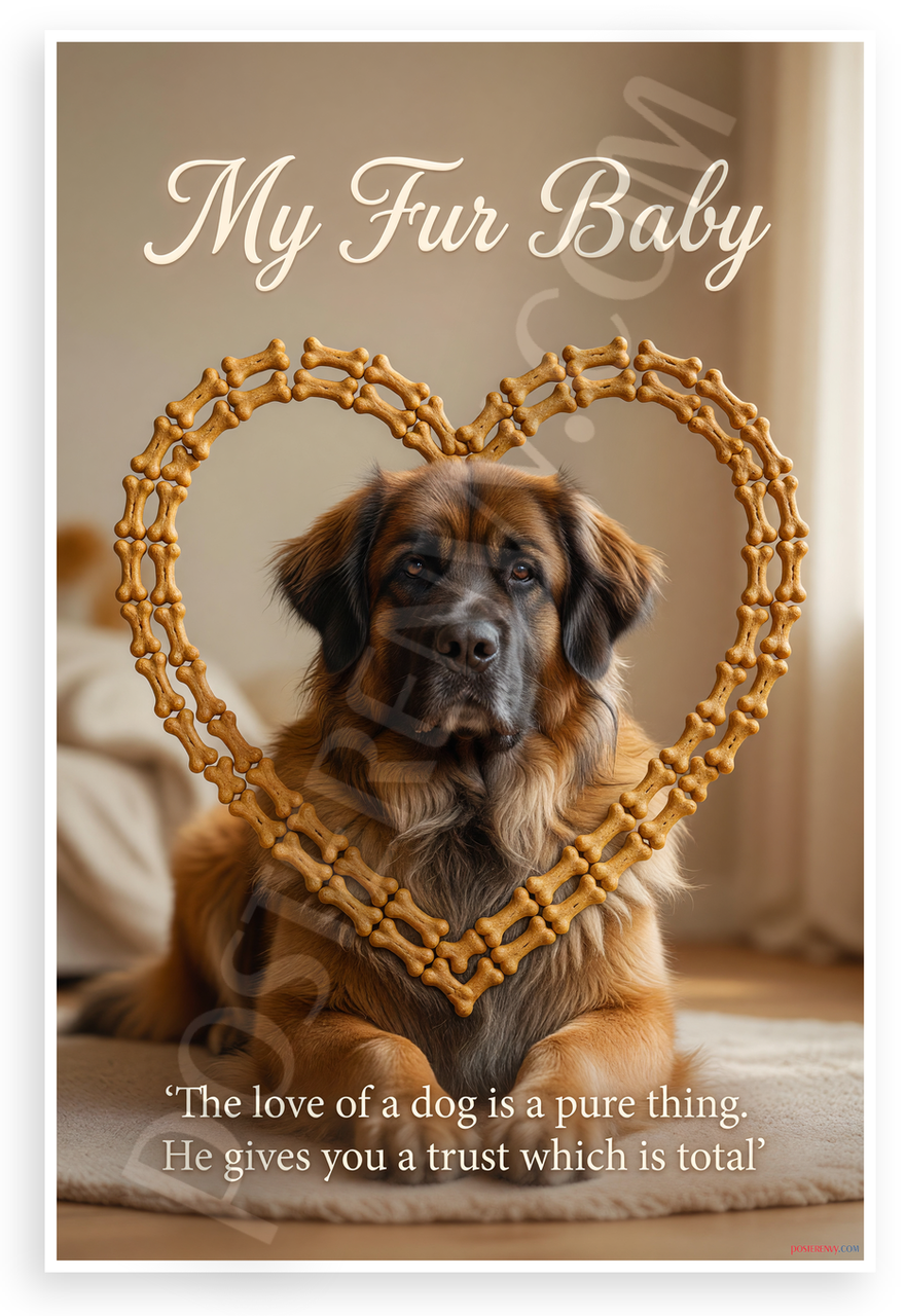 - Premium Print: This PosterEnvy 12x18 inch poster is printed on Durable, Heavy Duty Paper, Designed to last many years. Features Leonberger dog in bone heart frame with 'My Fur Baby' and dog love quote