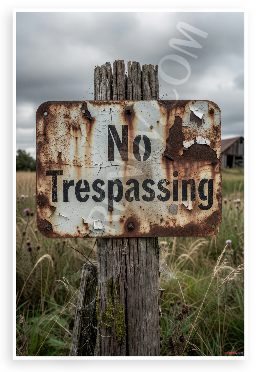 - Premium Print: This PosterEnvy 12x18 inch poster is printed on Durable, Heavy Duty Paper, Designed to last many years. Features weathered No Trespassing sign in rustic field setting with cloudy sky