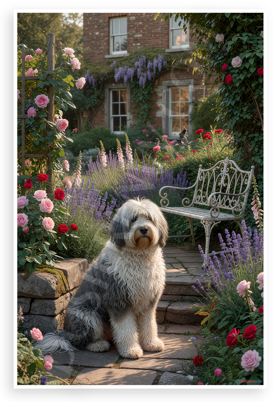- Premium Print: This PosterEnvy 12x18 inch poster is printed on Durable, Heavy Duty Paper, Designed to last many years. Features Old English Sheepdog in Victorian garden with roses, lavender, wisteria