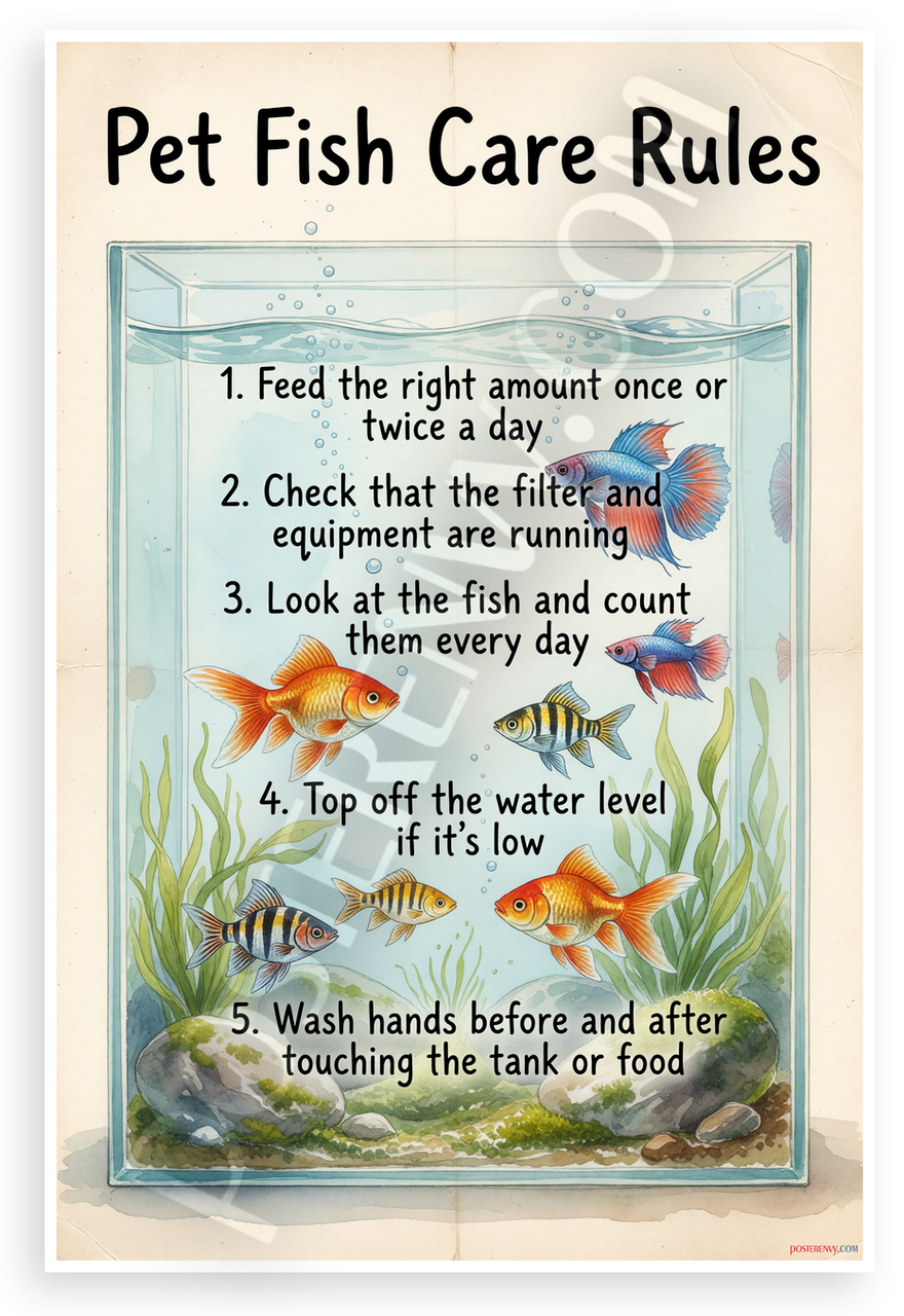 - Perfect Gift Idea: Ideal for young pet owners, birthdays, classroom rewards or homeschooling with fish care keywords like aquarium rules, goldfish poster and tropical fish education