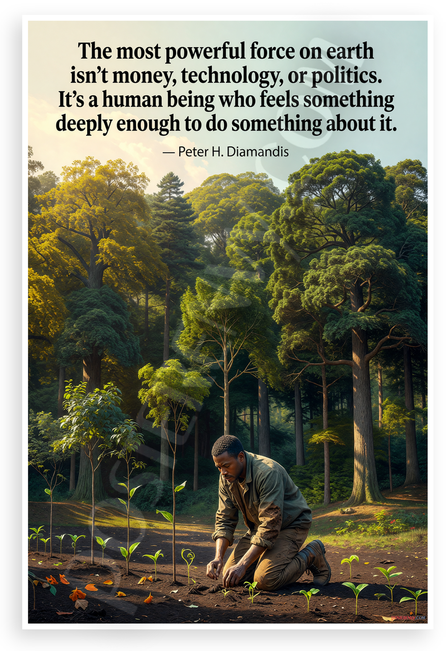 - Premium Print: This PosterEnvy 12x18 inch poster is printed on Durable, Heavy Duty Paper, Designed to last many years. Peter H. Diamandis inspirational quote with forest planting scene evoking human potential and growth.