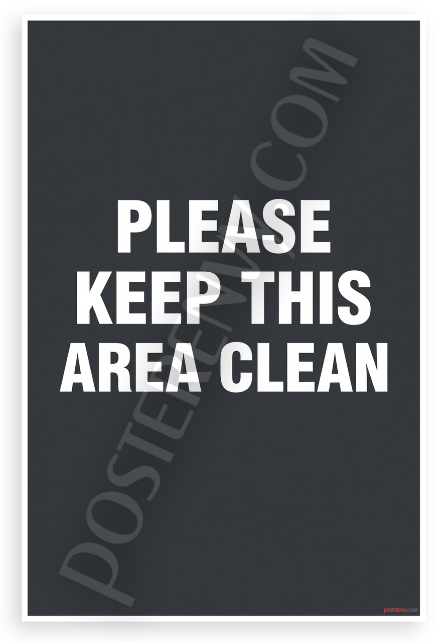 This 12x18 inch poster is printed on premium, durable paper. Proudly Made in the USA by PosterEnvy. The perfect size for any room. PosterEnvy is a family owned business, delivering top-notch posters around the world for over 20 years. Our posters are designed to last — they won't fade or pucker for years of enjoyment. Every poster features crisp, vivid artwork. We are a solar powered company. This bold black and white poster displays 'Please Keep This Area Clean' in large, emphatic typography on a dark gray background, perfect for promoting tidiness in any space.