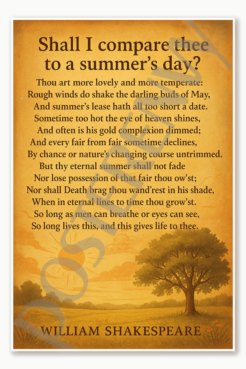 Shall I compare thee to a summer's day Poster - 18 inch x 12 inch