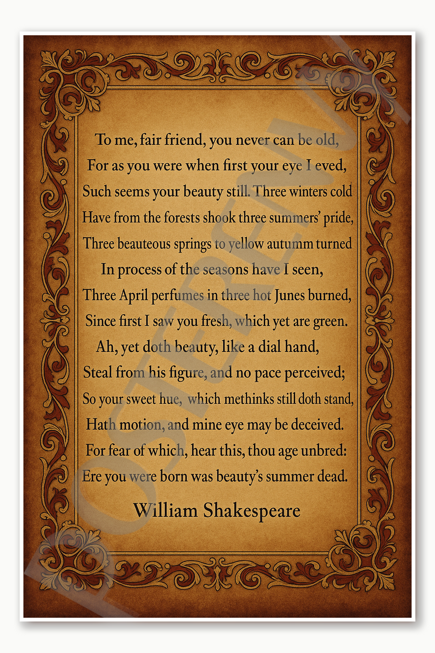 To me, fair friend, you never can be old Poster - 18 inch x 12 inch