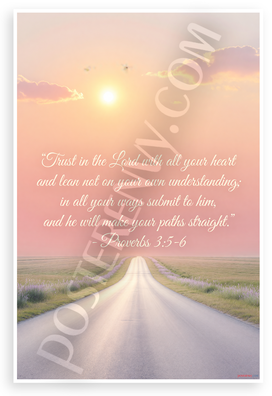 - Premium Print: This PosterEnvy 12x18 inch poster is printed on Durable, Heavy Duty Paper, Designed to last many years with Proverbs 3:5-6 Bible verse and scenic road landscape