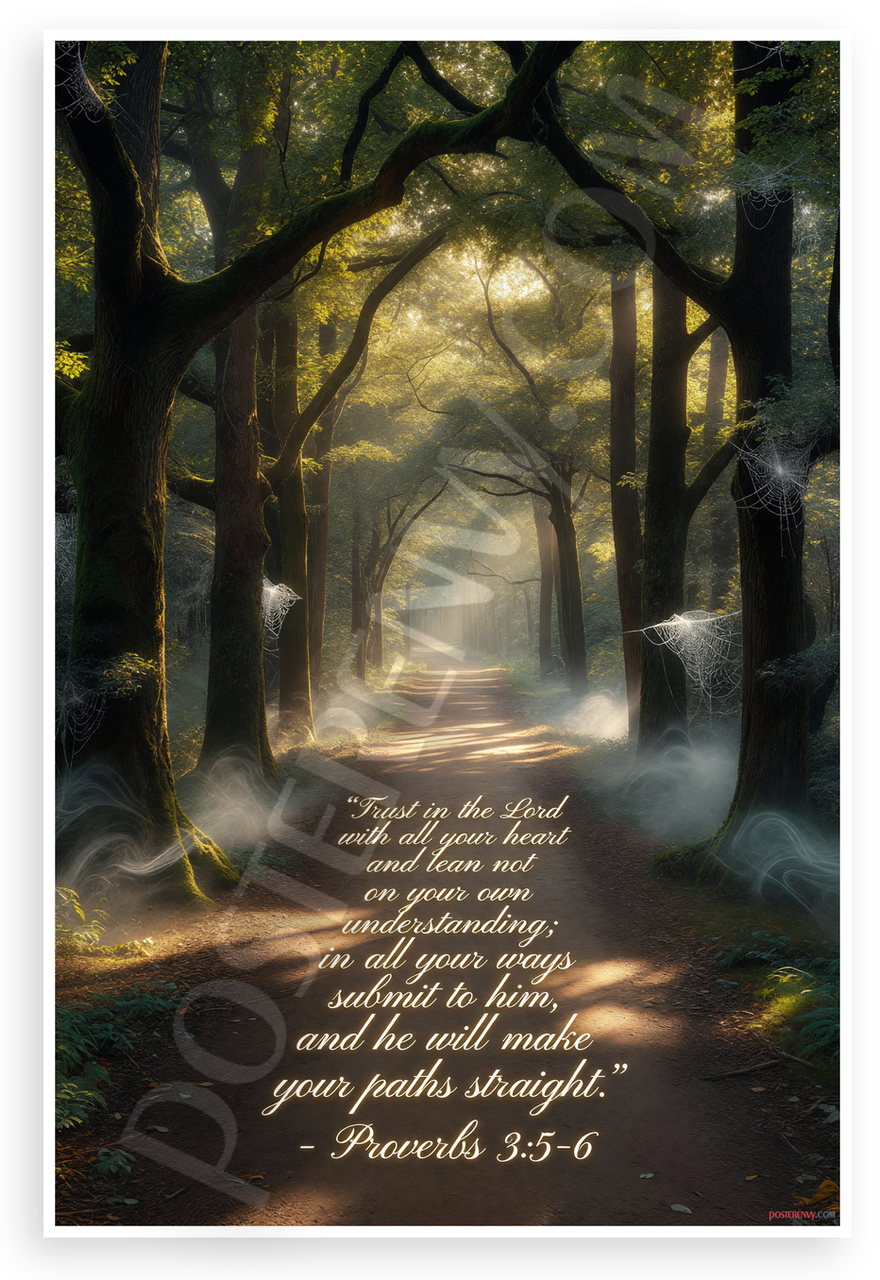 - Premium Print: This PosterEnvy 12x18 inch poster is printed on Durable, Heavy Duty Paper, Designed to last many years featuring Proverbs 3:5-6 Bible quote on forest path