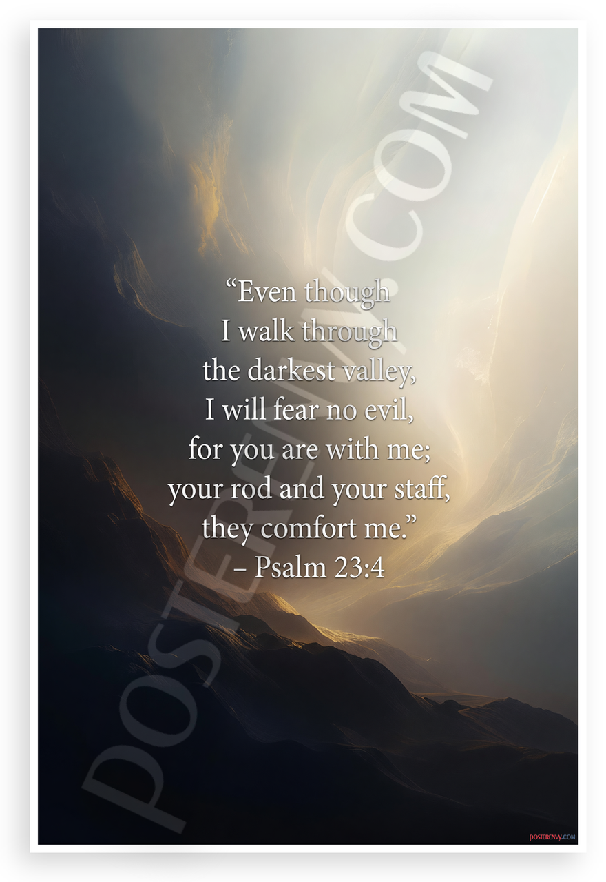 - Premium Print: This PosterEnvy 12x18 inch poster is printed on Durable, Heavy Duty Paper, Designed to last many years. Features Psalm 23:4 Bible verse with abstract dark valley light swirls representing faith and comfort.