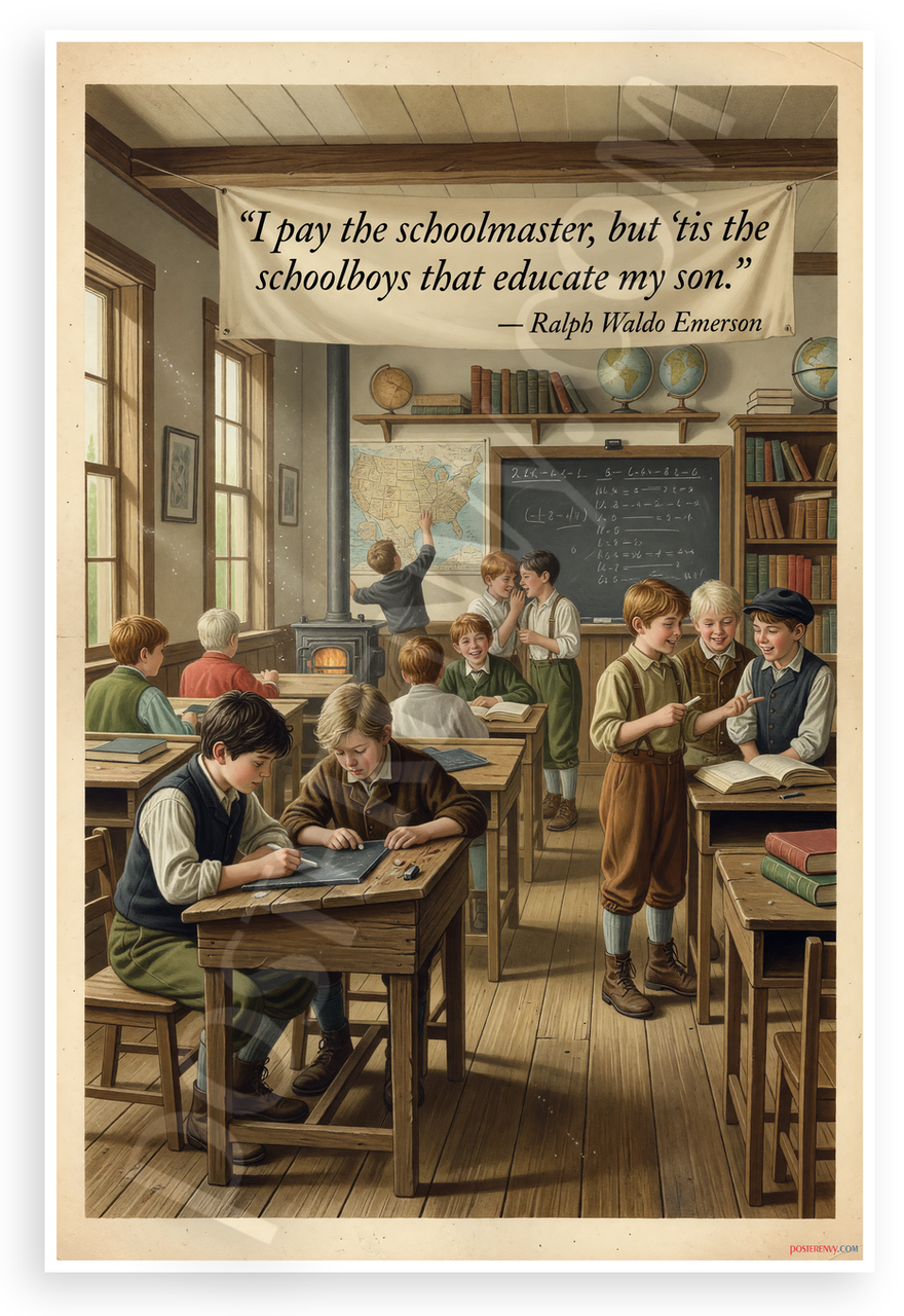 - Premium Print: This PosterEnvy 12x18 inch poster is printed on Durable, Heavy Duty Paper, Designed to last many years. Features Ralph Waldo Emerson quote and vintage 19th-century classroom with schoolboys, chalkboard, globes