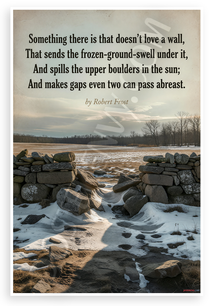 - Solar Powered Production: All our posters are designed and printed using solar energy, with crisp vivid artwork. Winter field stone wall Robert Frost inspirational print
