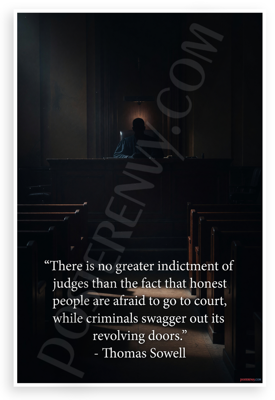 - Premium Print: This PosterEnvy 12x18 inch poster is printed on Durable, Heavy Duty Paper, Designed to last many years. Features Thomas Sowell quote on judges, courtroom scene with shadowy judge silhouette