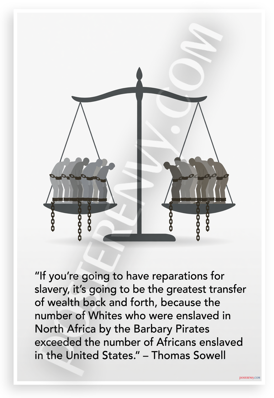 - Premium Print: This PosterEnvy 12x18 inch poster is printed on Durable, Heavy Duty Paper, Designed to last many years. Features Thomas Sowell quote on slavery reparations with symbolic scales illustration