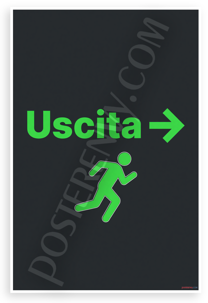 - Premium Print: This PosterEnvy 12x18 inch poster is printed on Durable, Heavy Duty Paper, Designed to last many years with bold green Uscita exit text, running figure, and arrow