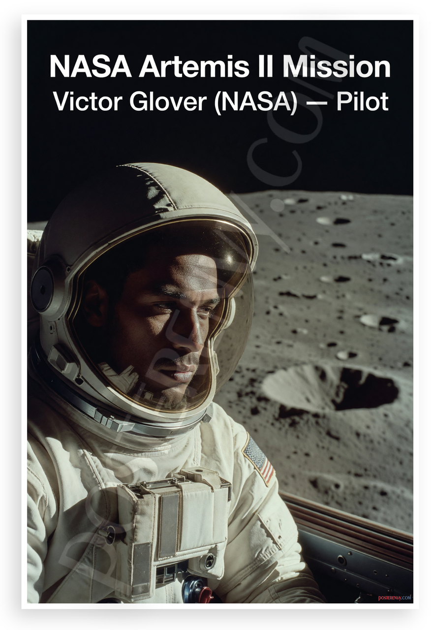 - Premium Print: This PosterEnvy 12x18 inch poster is printed on Durable, Heavy Duty Paper, Designed to last many years. Features Victor Glover NASA Artemis II Mission Pilot viewing lunar surface in vintage style