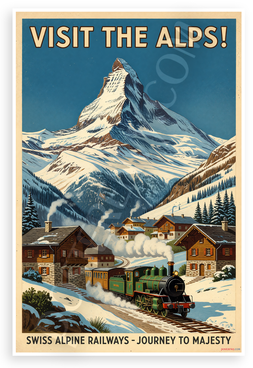 - Proudly Made in the USA: PosterEnvy is a Family owned business, delivering top-notch posters around the world for over 20 years. Ideal for Swiss Alps travel vintage railway Matterhorn chalet decor
