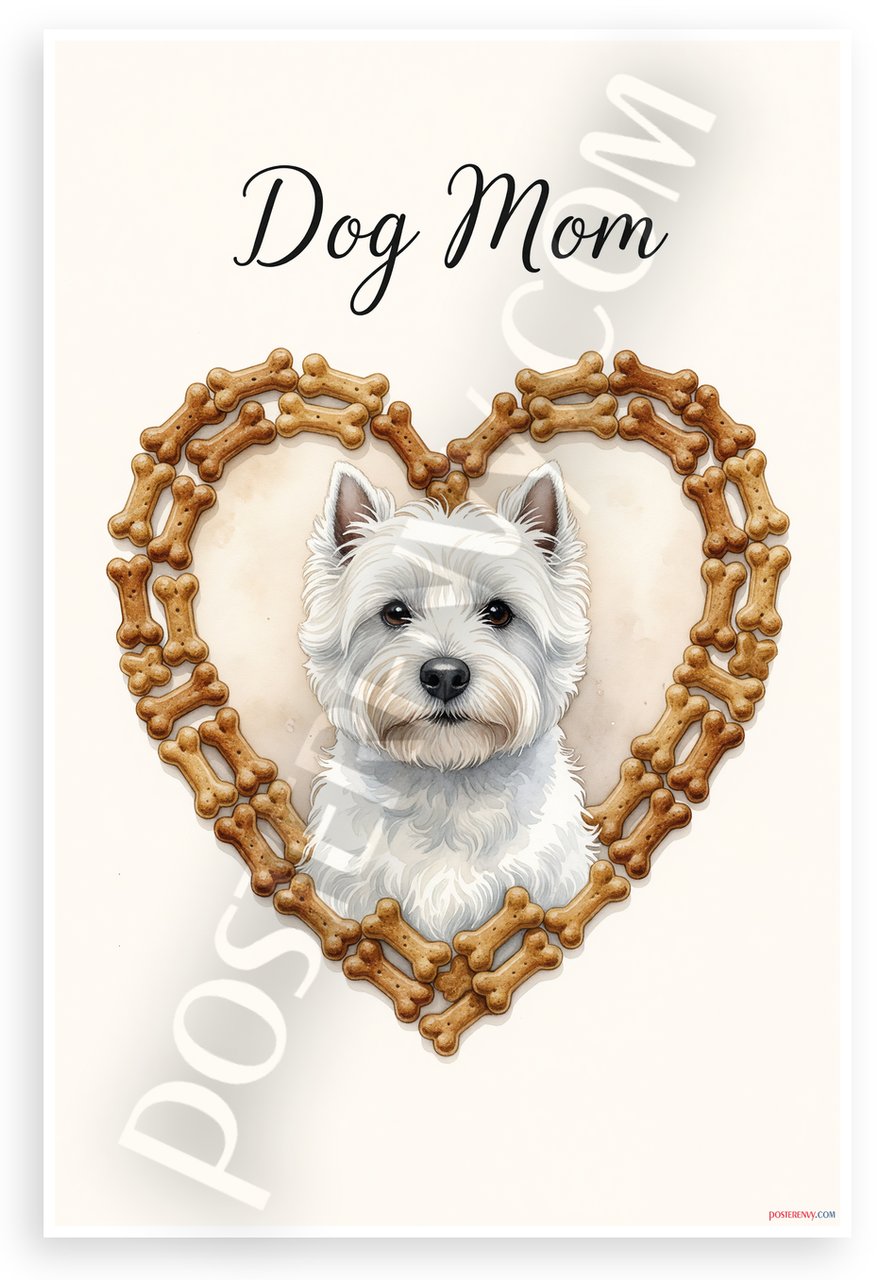 - Premium Print: This PosterEnvy 12x18 inch poster is printed on Durable, Heavy Duty Paper, Designed to last many years. Showcases West Highland White Terrier in watercolor style with dog bone heart frame and Dog Mom text